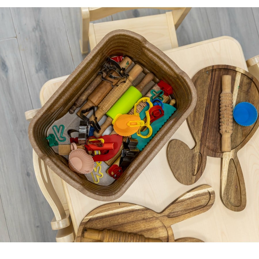 The CloudCubby® Tray offers a modern alternative to other baskets and tubs, that is quicker to clean, antimicrobial, lightweight, and stackable. CloudCubby® allows practitioners the freedom to use their time teaching, rather than cleaning. No splinters, breakable parts or difficult cleaning, the tubs are designed to withstand the daily challenges of wet play and sticky fingers. Tubs are fully recyclable.