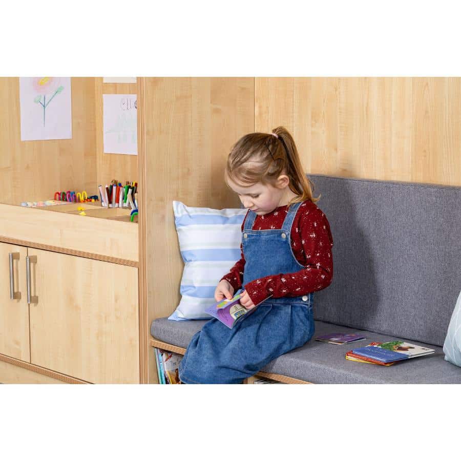 A brilliant addition to any setting, ensuring a clutter free and calm environment. Designed to maximise limited space in nurseries, this Reading Seat Cupboard has multiple functions for both practitioners and children. Children can use the lower level to relax, read and chat, whilst the top cupboards provide handy storage space.